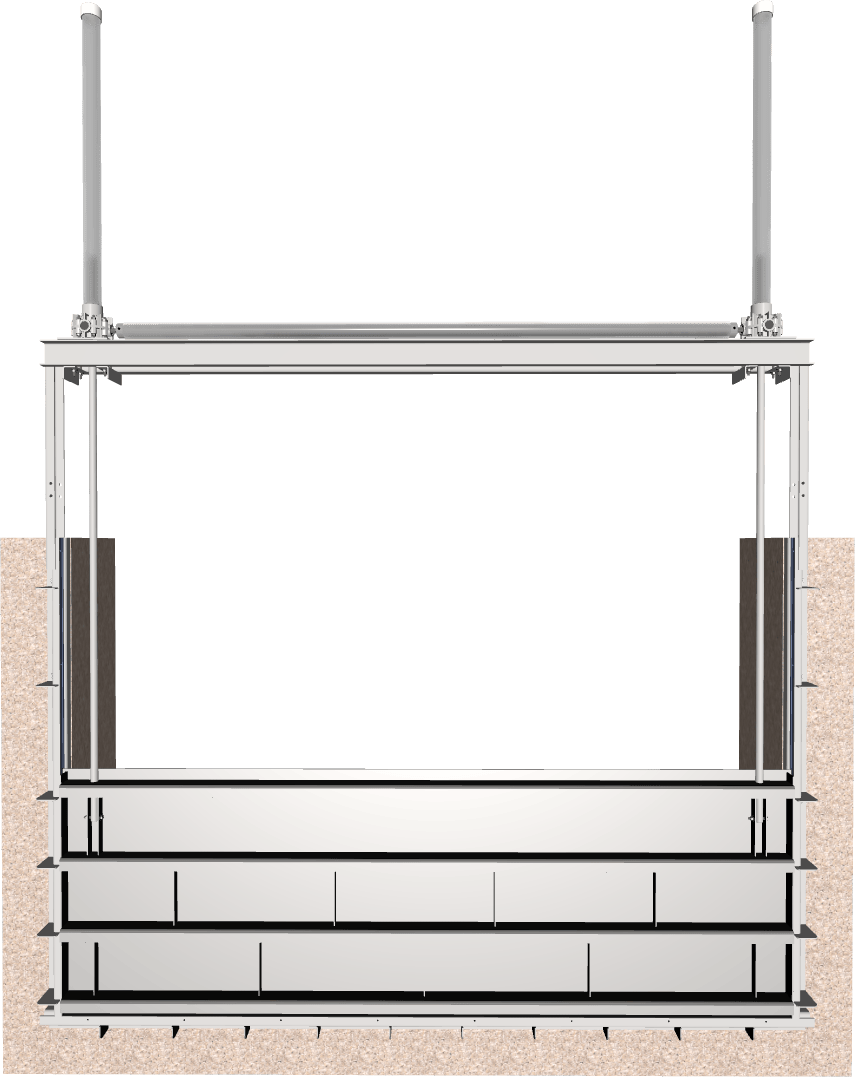 Gate frames may be embedded in the channel walls. mounted to a wall with anchor bolts, mounted to a pipe flange, or wall thimble. Wall thimble mounting is possible although it is usually only necessary for applications with high unseating heads. Gates can also be designed to mount to existing wall thimbles or existing pipe flanges. Flanged frames or flat frames are available for gates to cover square, rectangular or round openings in concrete structures.